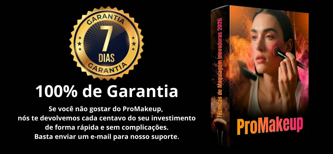 Você pode comprar, assistir às aulas, testar as técnicas no seu rosto… Se por algum motivo você achar que não vale o investimento, basta enviar um único e-mail que devolveremos 100% do seu dinheiro. Sem letras miúdas, sem perguntas chatas e sem ressentimentos. Você não tem absolutamente nada a perder.